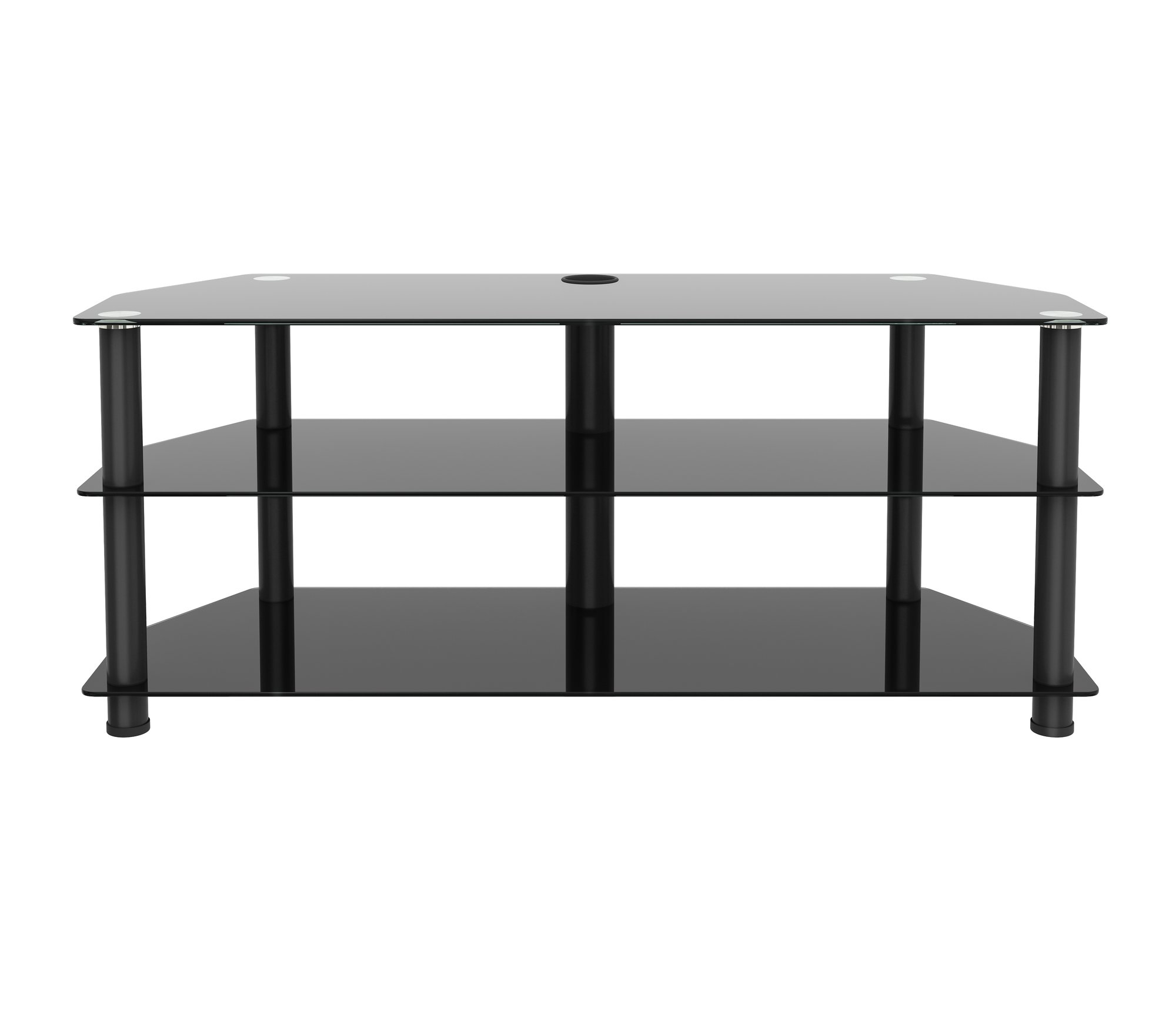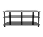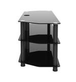 - CONTEMPORARY STYLE TV STAND WITH BLACK TEMPERED GLASS.